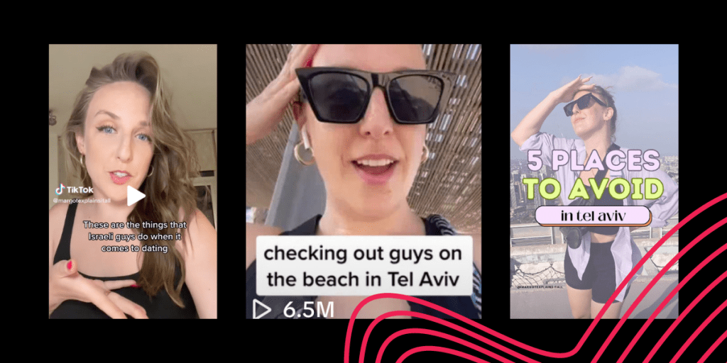 On TikTok, she typically posts videos every two to three days that highlight the ups and downs of living and dating in Tel Aviv. She routinely offers advice to recent immigrants based on her own experience making aliyah from Denver 10 years ago and takes lighthearted jabs at Israeli culture—all done with a wry sense of humor.